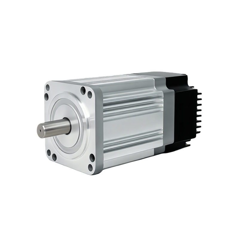 Интегрированный бесщеточный двигатель 80 — это компактный бесщеточный двигатель постоянного тока (BLDC) с размером фланца 80 мм, который объединяет двигатель, электронный драйвер/контроллер и часто энкодер (а иногда и тормоз) в один блок. Эта конструкция «все в одном» упрощает проводку и установку по сравнению с отдельными компонентами.